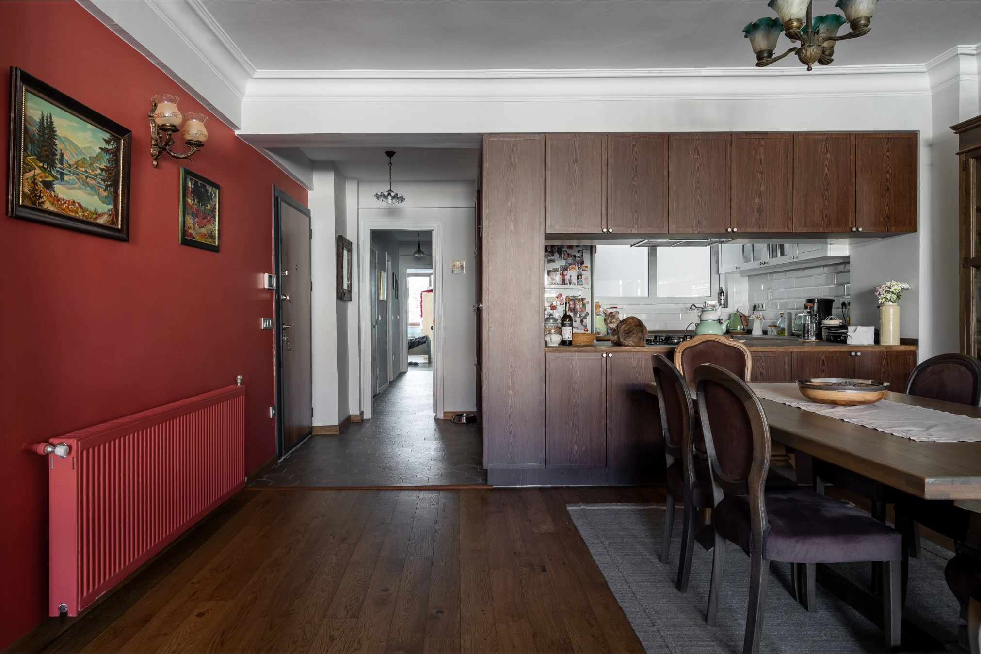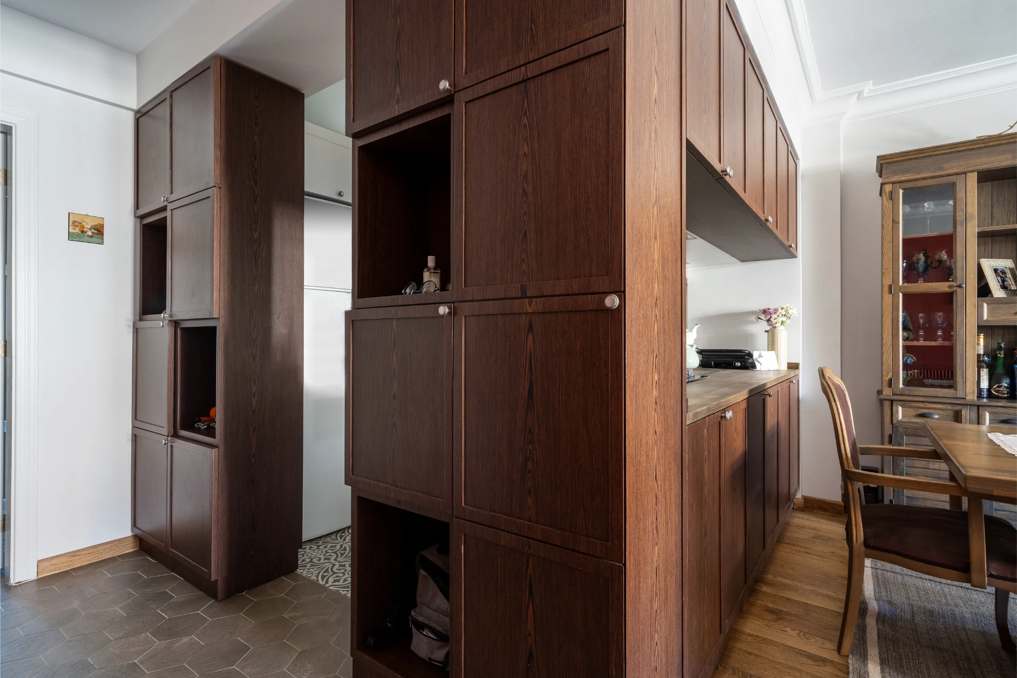 Her alan, kullanım alışkanlıkları ve estetik beklentiler doğrultusunda yeniden kurgulandı. Ahşap dokuların sıcaklığı, modern çizgilerin yalınlığı ile birleşerek hem zamansız hem de işlevsel bir yaşam alanı ortaya çıktı.