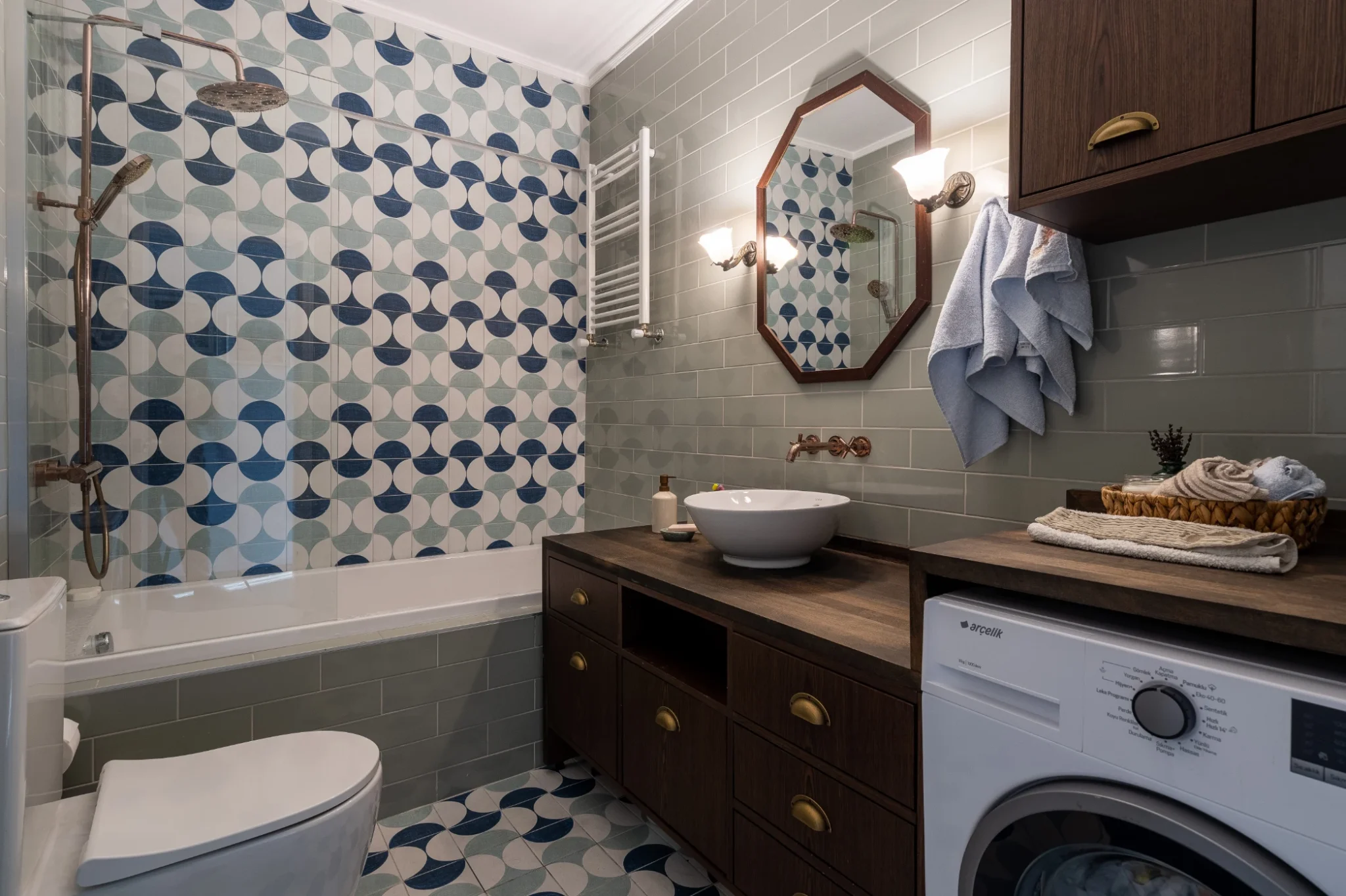 Ardel Tasarım olarak İstanbul Kadıköy Moda’da 130 m²’lik bu konut projesinde, mutfak, banyo ve gardırop alanlarında özel üretim çözümler sunduk.